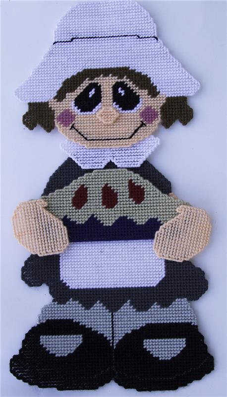 Thanksgiving Pilgrim Girl Wall Hanginga Plastic Canvas Pattern by Plastic-Canvas-Kits.com